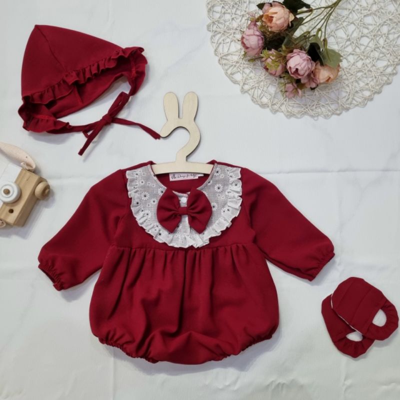 Bodysuit cho bé mận đỏ ❤️ FREESHIP ❤️ BODY trẻ em kèm mũ & giày vải từ ss -13kg chất thô đũi phối ren cao cấp free ship