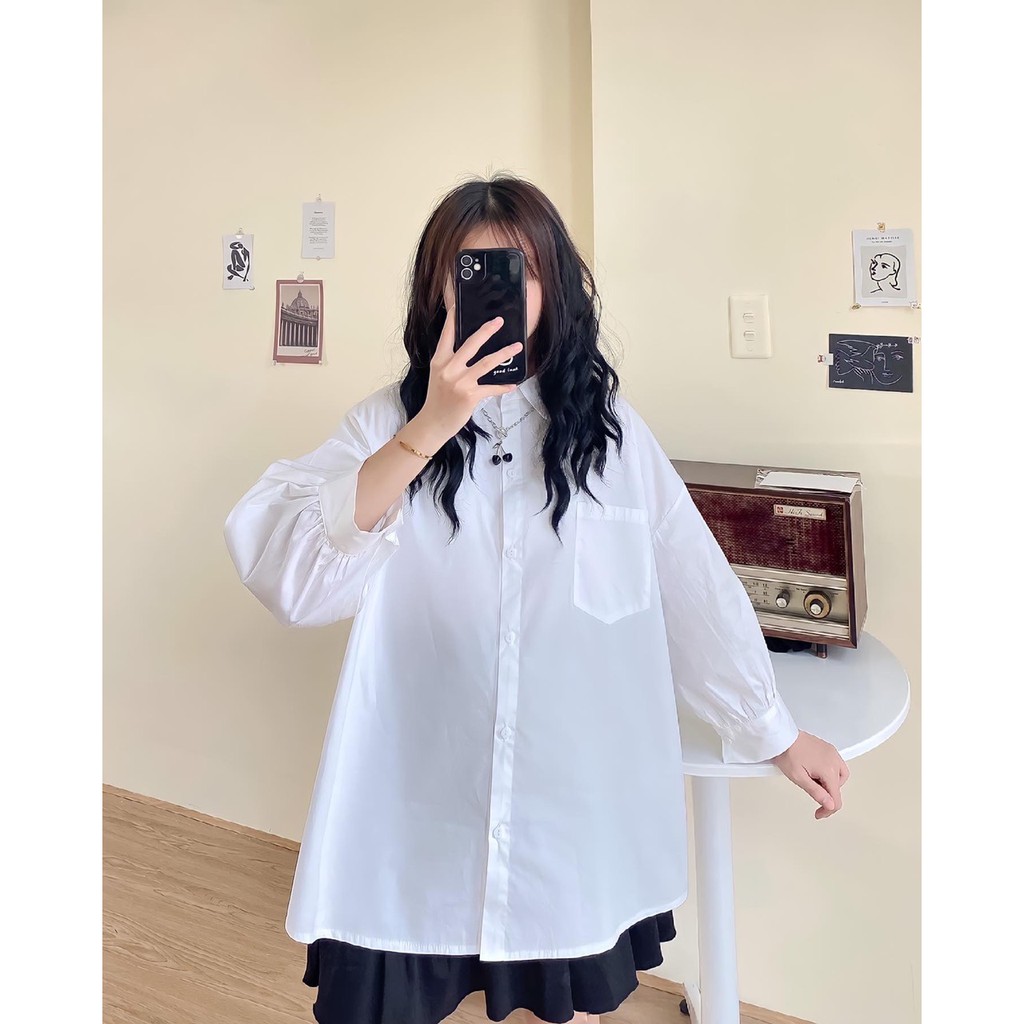 Áo sơ mi trắng tay phồng madebymint free ship